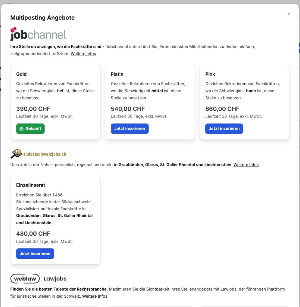 Wir bewerben Ihr Jobinserat auf Google und Social Media und generieren damit Reichweite für Ihr Jobinserat. Job-Abos und Newsletter bringen Ihre Anzeige direkt zu passenden Kandidaten.